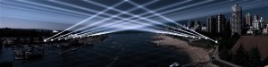 The other cool thing is this ‘Vectoral Elevation’ sounds kind of dirty but it’s not. They’ve added these lasers/lights to False Creek and during the games you can go online and choreograph them into different designs. Everything will be shown via web cam. I wish I was in my old apartment on False Creek – it would be cool to set the light show in my own back yard!