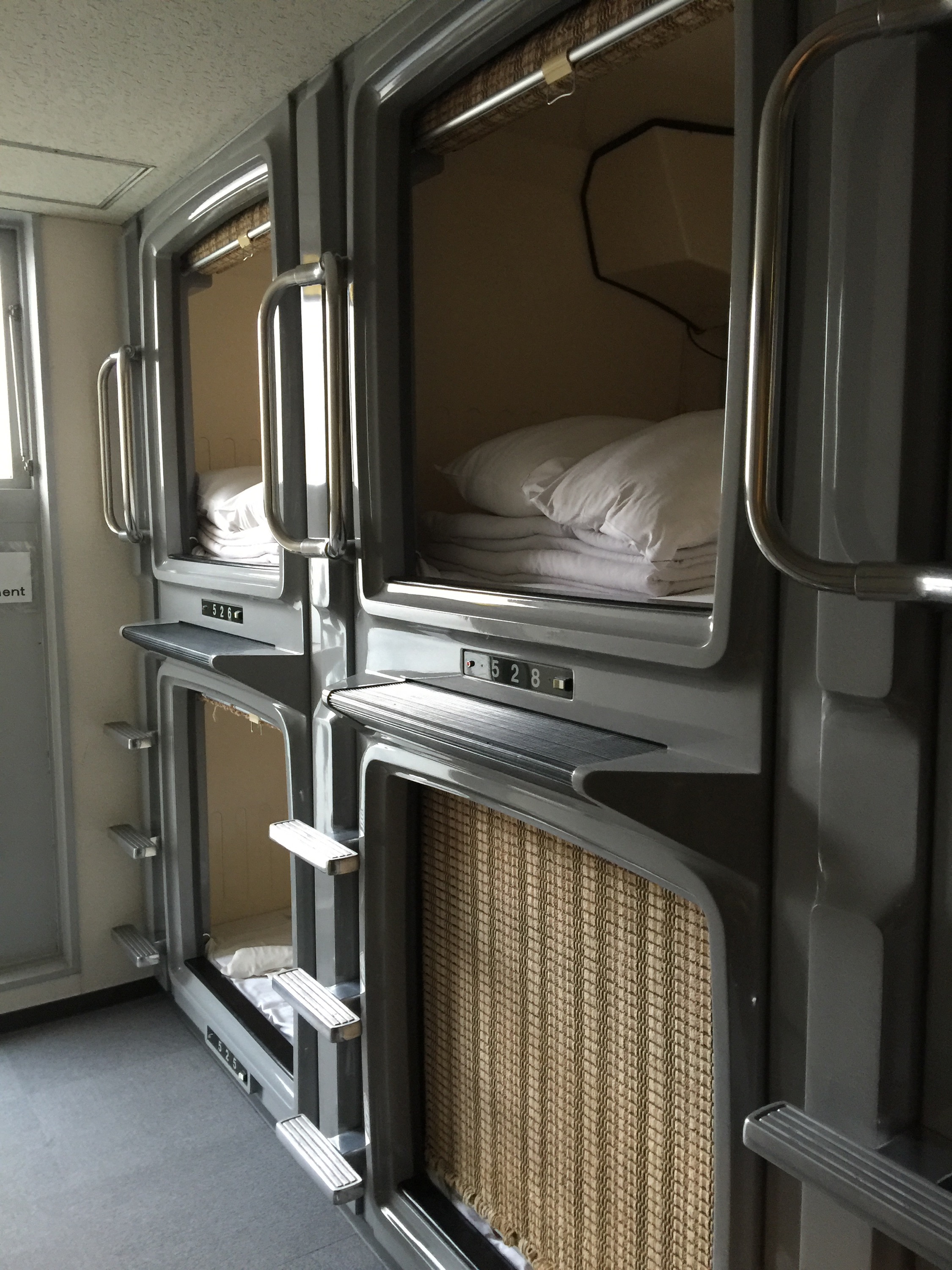 Vancouver to Tokyo – the flight was great on JAL but we were a little overtired on arrival, making it tough to grasp the train system. It ended up taking a few more hours than necessary but when we did finally get to our capsule hotel I was so tired I had the best sleep. The capsule itself was quite spacious… We both fit in it plus our luggage. There was even a little tv. They provided the cutest pajamas too.
