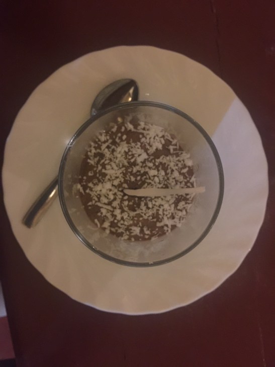 Got used to dessert every night. This was chocolate mousse and coconut night.